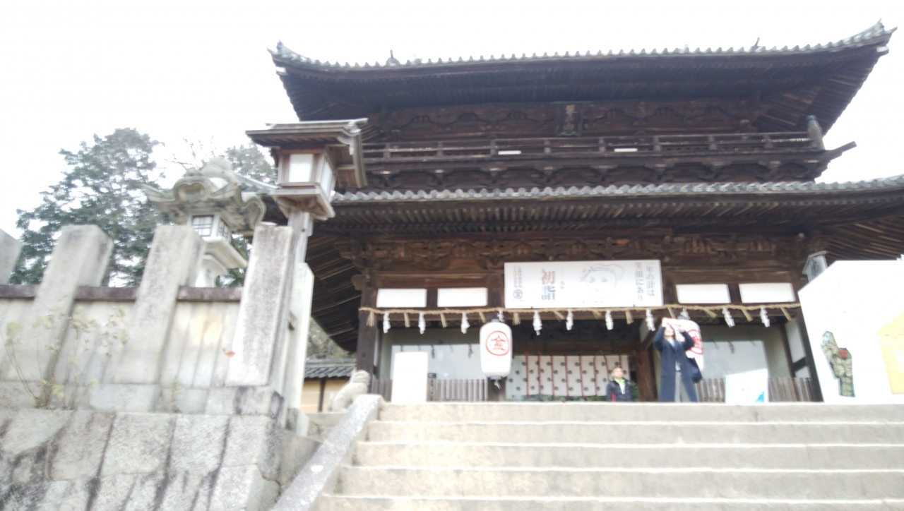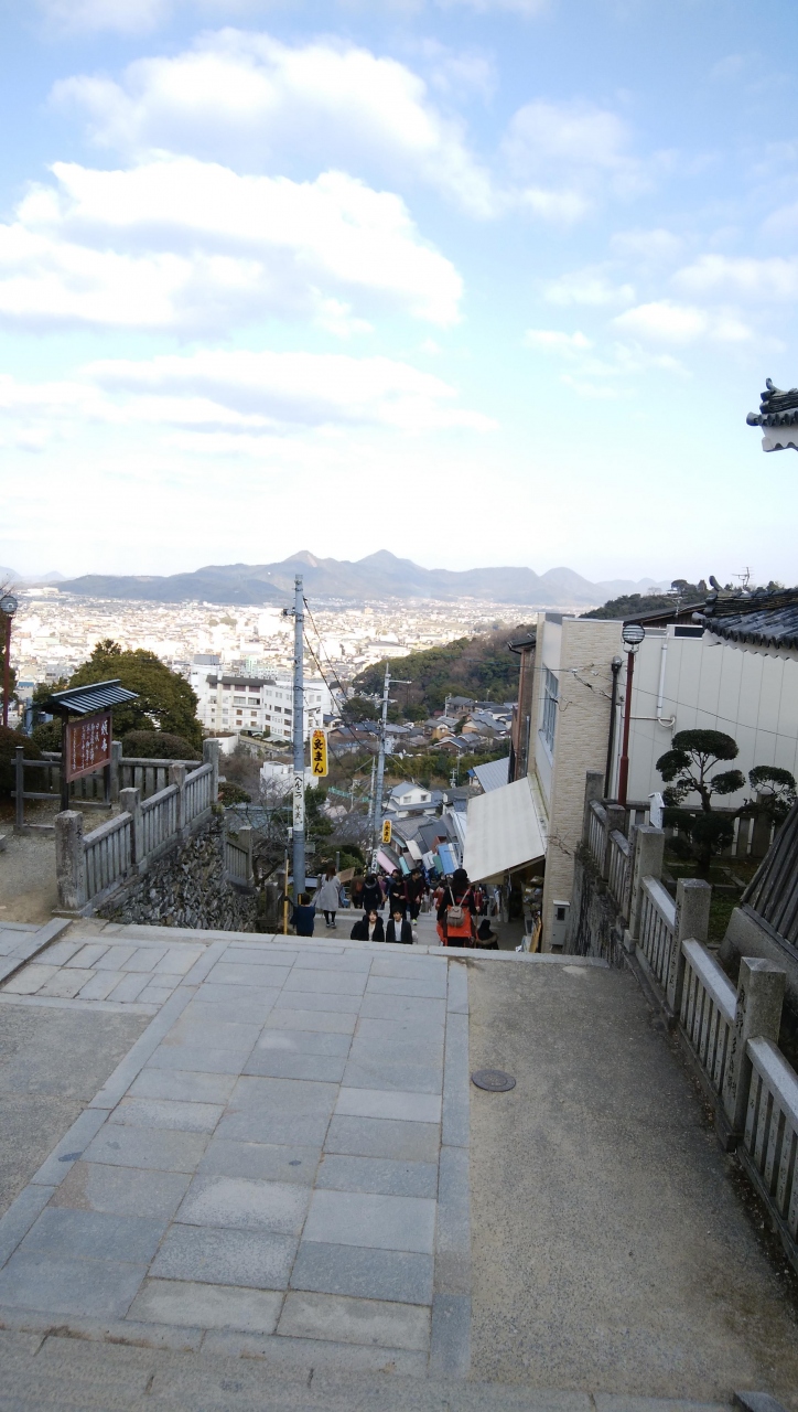 階段を登り始めて初めて目にする大きな寺社建築が大門です。振り返れば琴平の街が見下ろせここまで登ってきたんだという実感がわいてきます。門をくぐれば5人百姓という5人の方がそれぞれベッコウ飴を販売しています。