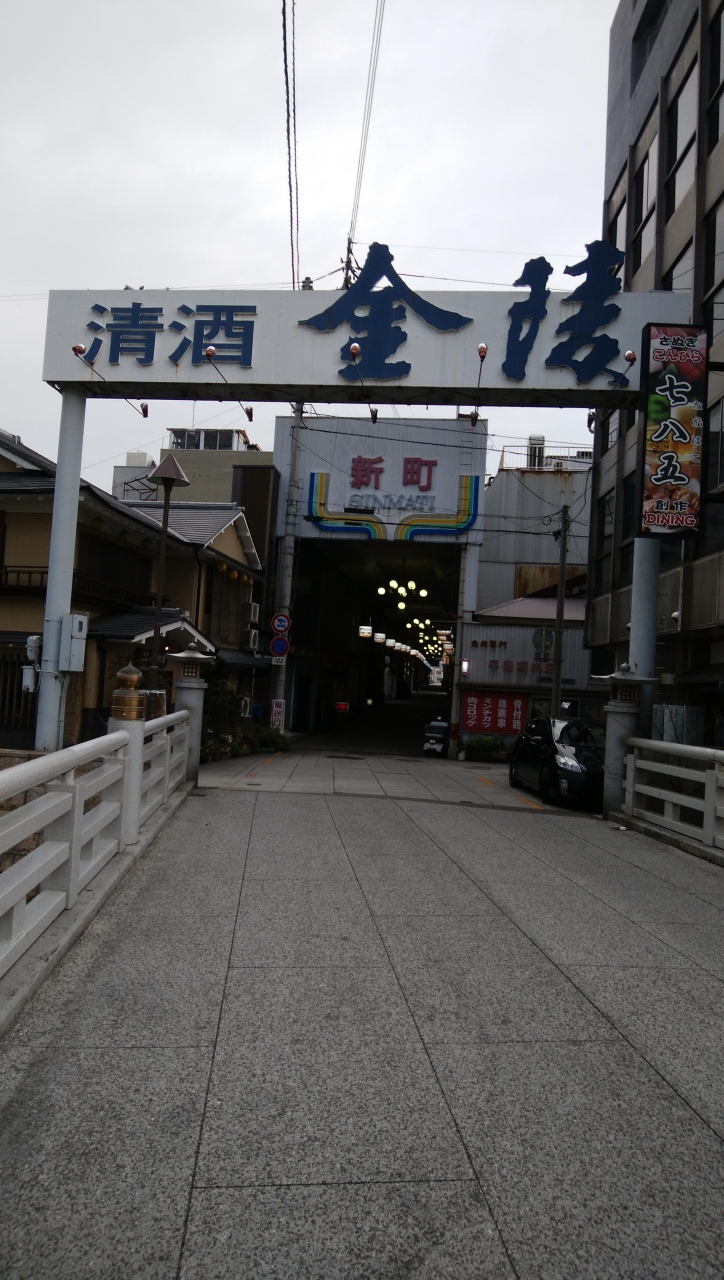 金刀比羅宮から下りてきて参道を抜け橋を渡るとこの商店街です。夕方通りましたが表参道と対照的に閑散としていました。良い立地にあるのに勿体ないと感じました。