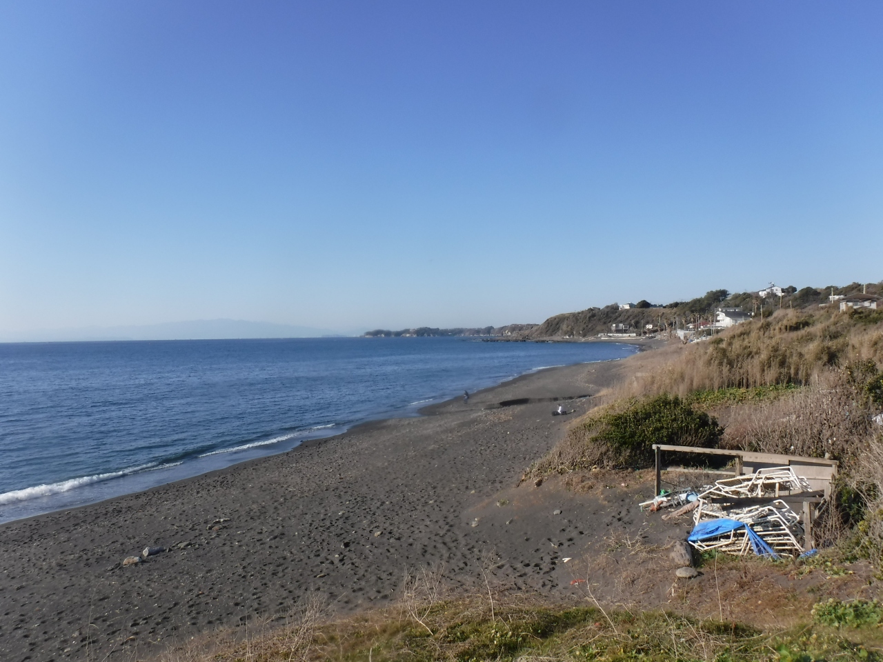 海岸の右手は岩場になっておりその先が黒崎の鼻に続いています。