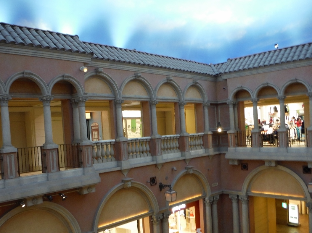 建物内に空があってヨーロッパ調の街並みがあって、ラスベガスでみた商業施設にそっくり。見て歩くのも楽しかったです。ただ作りが直線ではないのであちらに行きたいのにこの店の後ろを通って…とやたらカーブが多くて動線が悪く、時間がない時にはイラッとします。