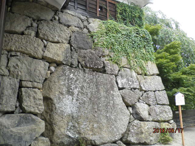 上田城跡公園の東虎口櫓門近くの石垣の中に埋め込まれたひときわ大きな石です。信之が上田から松代へ移封されたとき、父昌幸の形見として持っていこうとしたが、動かなかったという言い伝えがあるようです。確かに大きな石ですが、石垣の中に埋め込まれており、説明の立て看板がなければ、たぶん気づかないでしょう。