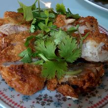 ランチセットは平日のみらしいです。グランドメニューからパッタイとカオマンガイとフライドチキンをいただきました。