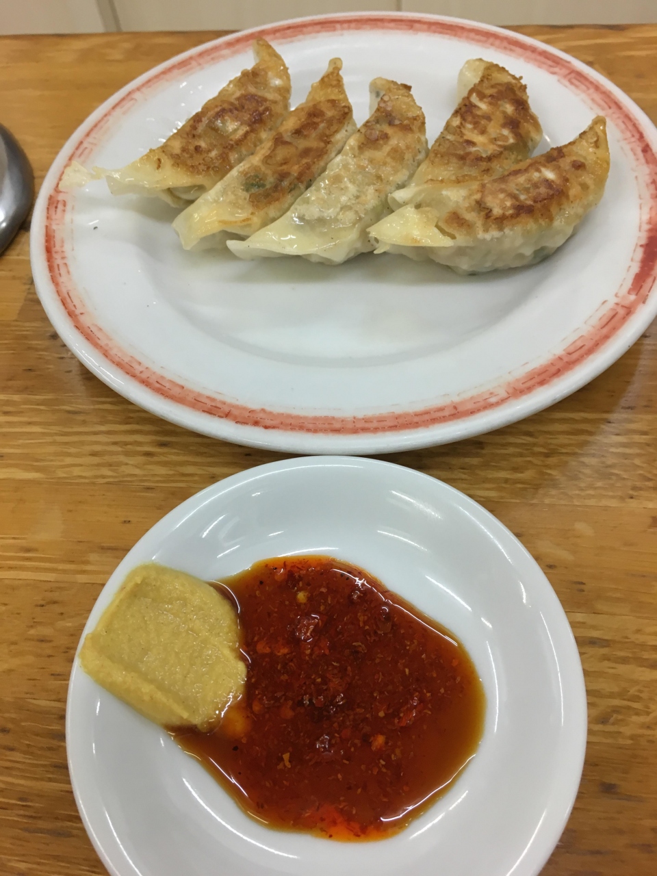 15時前に着きました。その時間にも関わらず数組が並んでいました。1人なので早くに入店できました。席についたらいきなり餃子が出て来ます。1皿5個で270円で最低2皿。メニューは餃子とビールのみ。餃子は野菜たっぷりでとても美味しかったです。