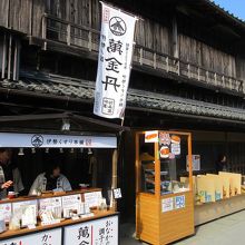 伊勢神宮の内宮からほど近い「おはらい町」を歩いていると、あちらこちらにこの「萬金丹」のかんばんが出ていました。一袋購入してなめてみると、見た目は黒糖飴ですが途中で漢方薬の練りこまれた部分がその本領を発揮し始め、甘さと苦みがまじりあって得も言われぬ快感でした。甘草や桂皮などを練り合わせて作ってあり、健康に良さそうでした。