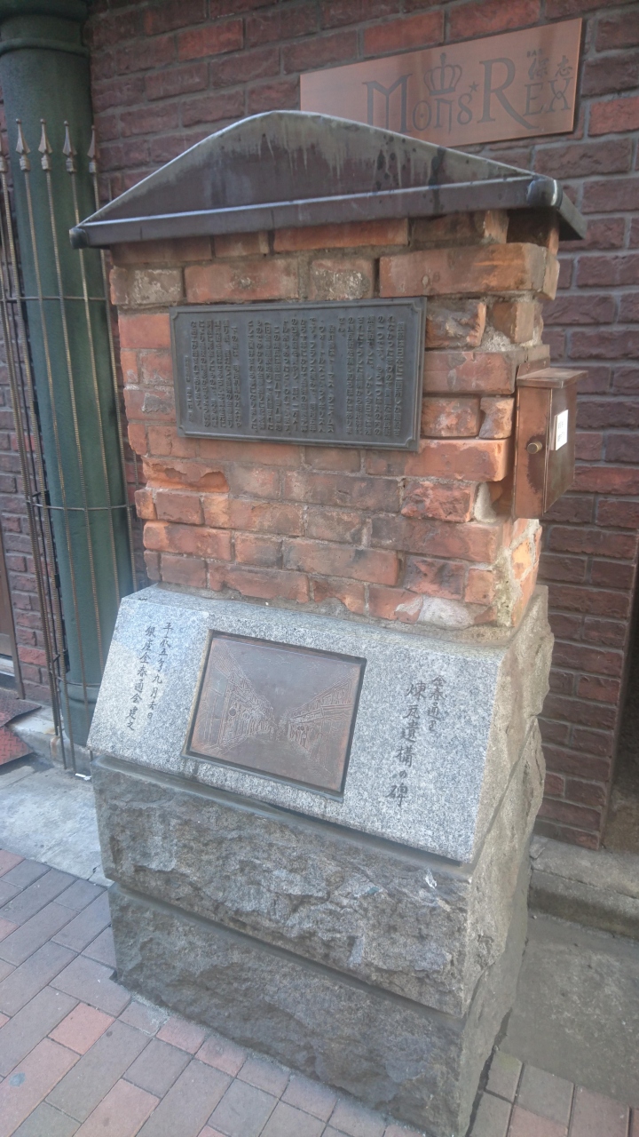 現在の東京からは考えられませんが、かつて銀座は、英人ウォートルスの設計により世界的にも珍しい規模の煉瓦街だったそうです。その名残である煉瓦遺構が金春通りで発見され、現在、煉瓦遺構の碑として整備されていました。ぱっと見ただけでは何の石碑かわかりませんが、東京の歴史の一端を知ることができました。