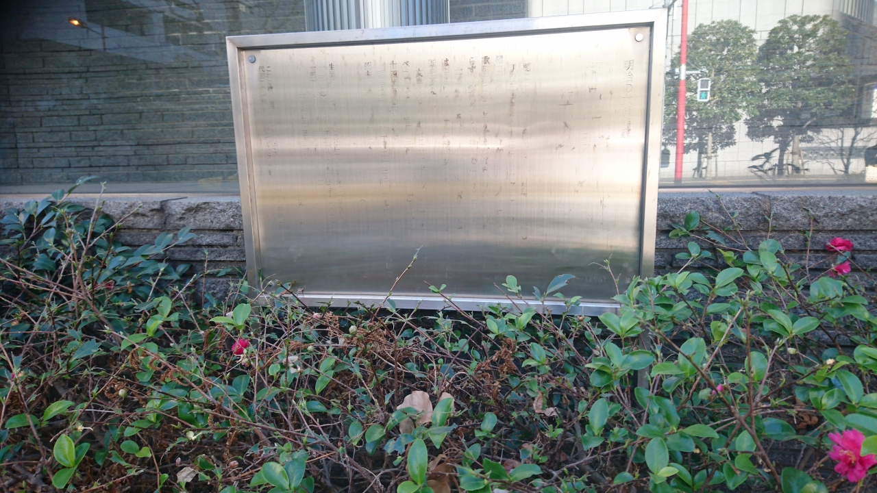 内幸町ホールの入口脇の植え込みに樋口一葉の生誕地の説明板が置かれていましたが、あまりに劣化しており文字もかすれてしまい、何が書かれているのか全く分かりませんでした。樋口一葉は15回も転居を繰り返していますが、生まれは内幸町で、東京府警視庁の役人の娘として生まれたそうです。