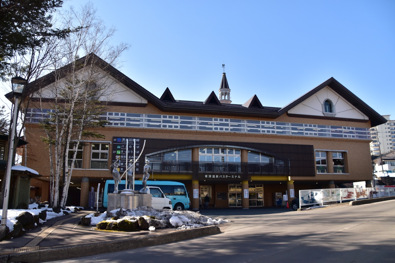 草津温泉はバスがメインのアクセスになる場所なので、バスターミナルが大きいです。3階は温泉図書館、2階はホームと売店、食堂、1階は観光案内所になっています。コインロッカーあり、足湯ありと待ち時間には困らない場所です。