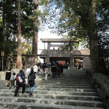 伊勢神宮の天照大神を祀るのがこの正宮です。石段を上がることになるのですが、階段の脇には「写真は階段下で」と掲示されているので、写真を写してから厳かな気持ちで石段を上がりました。当然正宮そのものも撮影禁止です。参拝客の多い伊勢神宮内宮ではありますが、この場所は背筋がピンと伸びるような厳かな空気が流れていました。