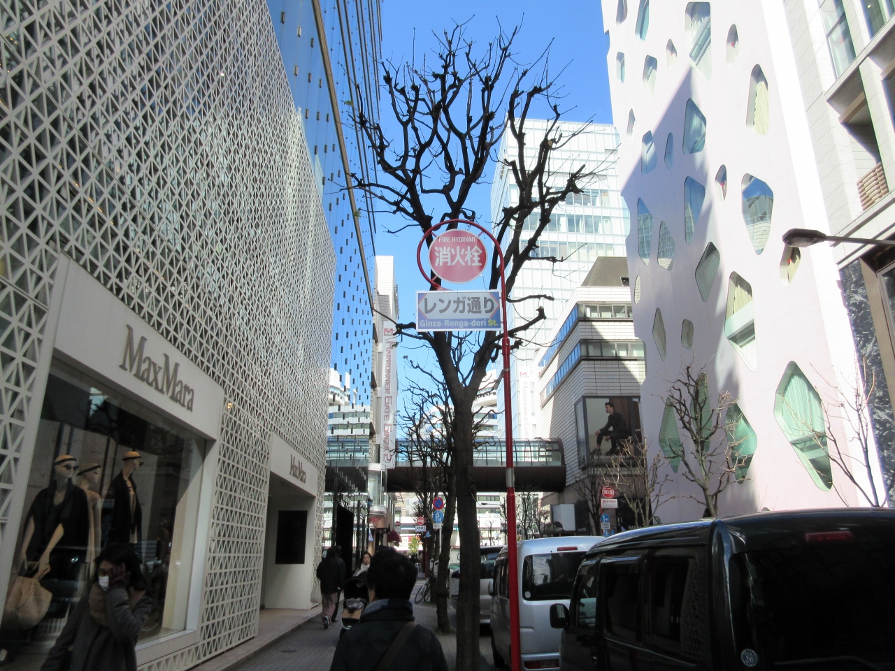 銀座の中央通りと並行して、銀座4丁目から銀座1丁目にかけて走る裏通りです。その名の通り、こちらの通りはレンガ敷きです。並木通りのような華やかさはないですが、落ち着いた雰囲気が良いと思います。混雑を避けたいときとかありますが、いいと思います。