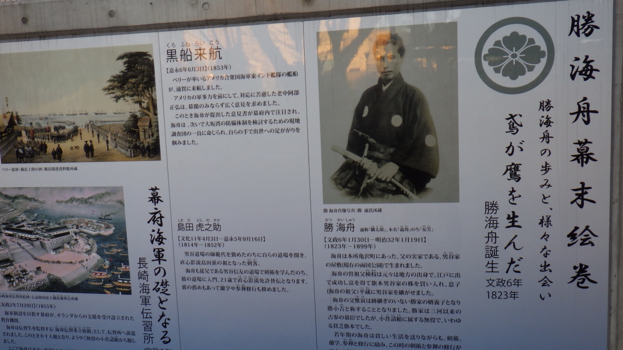 この地は幕末好きの歴史マニアには必見の地と言えるので、迷わずに効率的に散策できるよう両国江戸noren観光案内所にて勝海舟関連観光マップ入手をお勧めします。