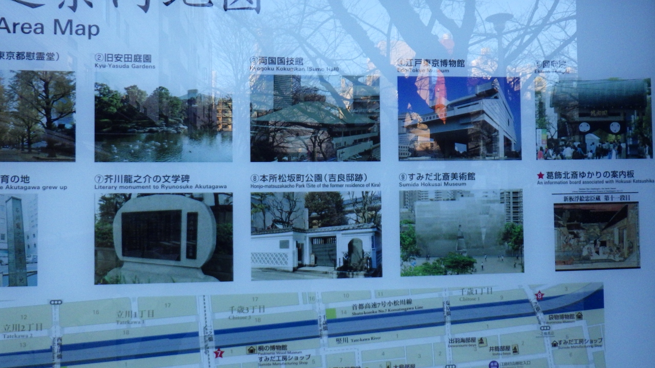 JR両国駅西口を出て南東へ500mほど、京葉道路を渡って進むと墨田区立両国小学校の隣にある両国公園内にある石碑と偉業を伝える展示パネルがあります。