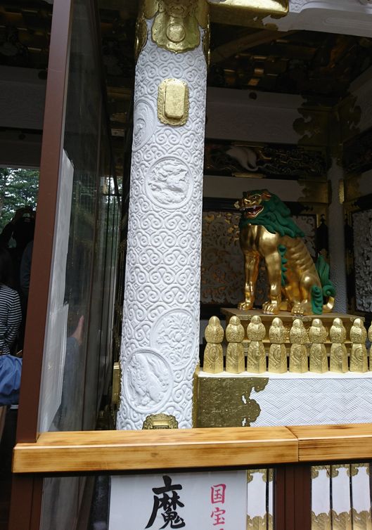 日光東照宮の陽明門の柱12本のうち、1本だけ「グリ紋」という渦巻きの文様が逆さになっていました。陽明門をくぐって左手の柱で「魔除けの逆柱」の表示がされているのですぐにわかります。不完全な柱を加えて魔除けにしたそうです。