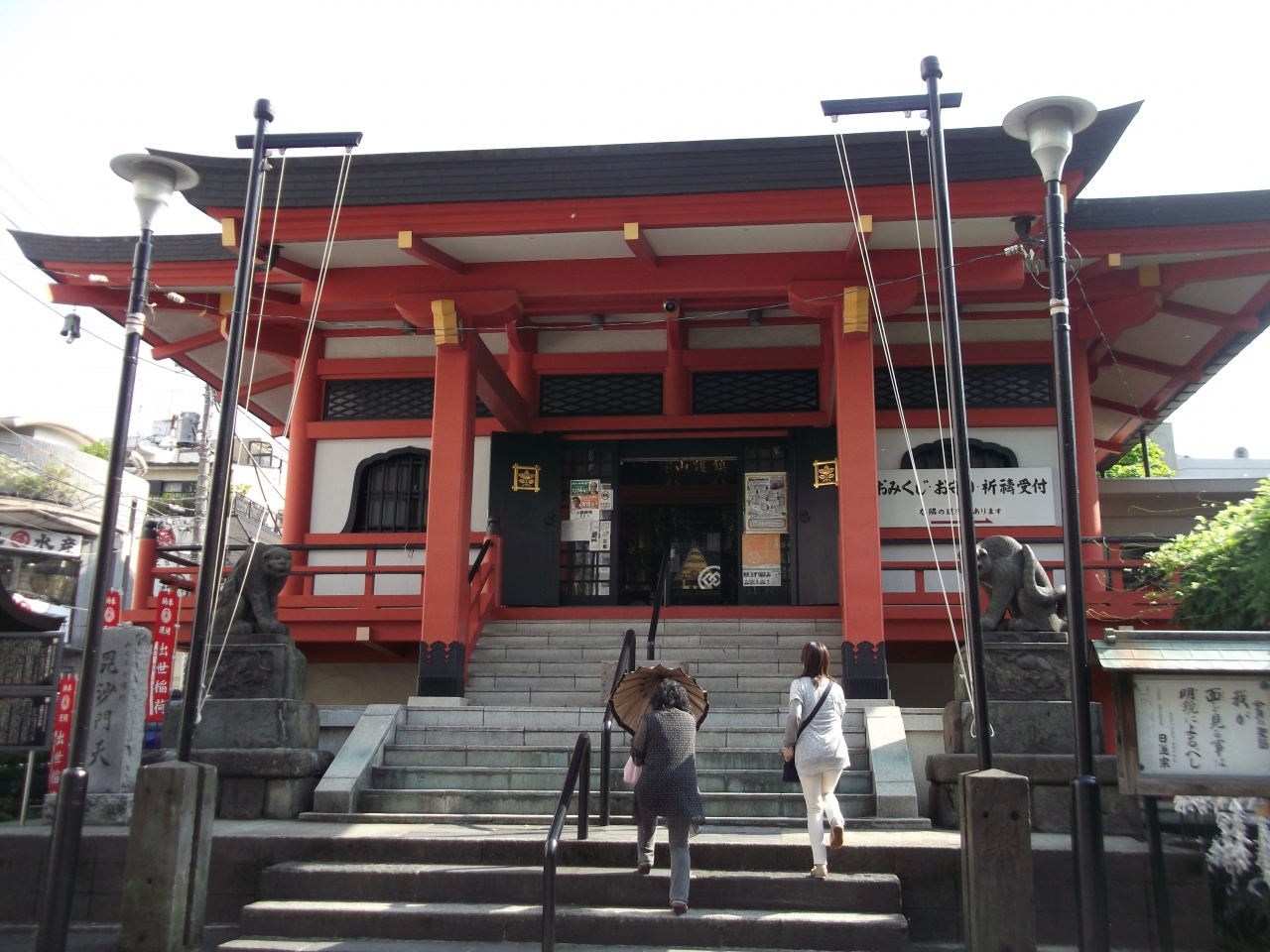 正式な名称は善国寺ですが、神楽坂の毘沙門天という呼び方のほうがしっくりいきます。門をくぐると、目の前に現れる真っ赤などっしりとした本堂が目を引きます。本堂を守るようにすぐ横に立つのは狛犬ならぬ石虎で、それもユニークな姿をしています。
