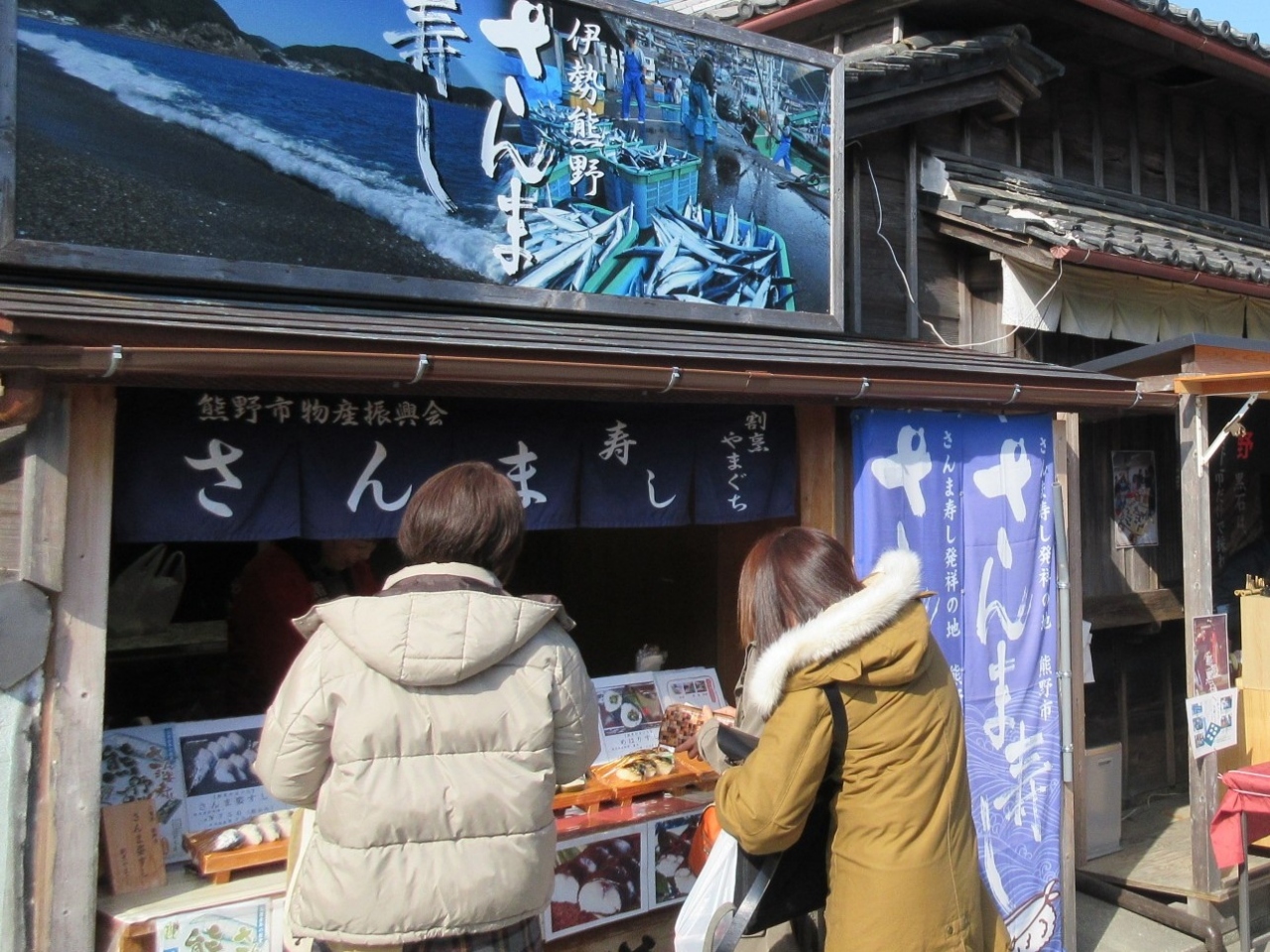人生初のさんま寿司に挑戦です。本来は熊野市にある割烹料理やさんですが、伊勢神宮内宮からほど近い「おはらい町」に屋台があったので立ち寄りました。お寿司とはいっても持ち帰りができるとのことで、この日は食べ歩きで流石にこれ以上はお腹に入らなかったので、宿に戻って食べようと購入しました。ふっくらしたさんま寿司は絶品でした。