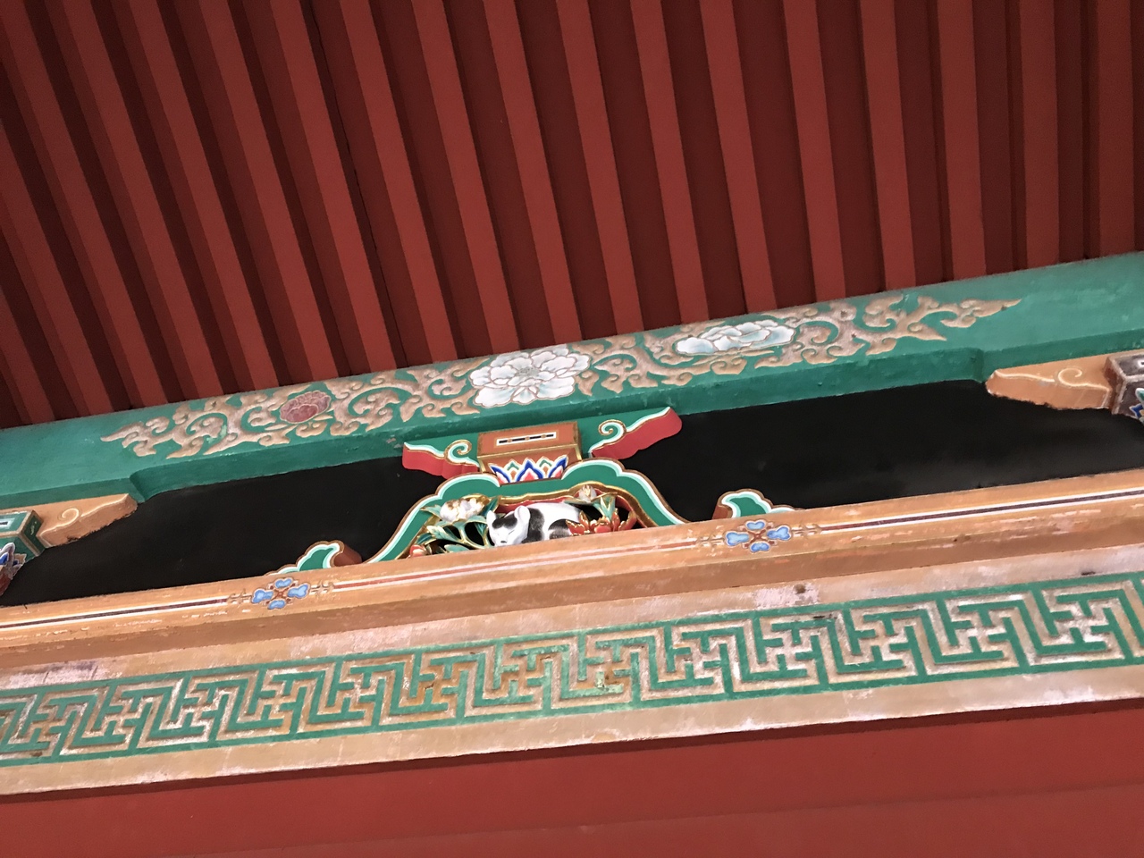 日光東照宮御本社から奥宮に向かう坂下門前の東廻廊の頭上に小さな国宝の彫り物「眠り猫」がある。
