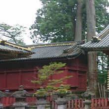 日光東照宮の表門をくぐると右手に下神庫があり、前方には中神庫があります。その間にある朱塗りの小さな建物です。神様のトイレだそうです。建物内は見ることはできませんので外観だけの見学になりますが、近くには行けないので遠くから眺めるだけでした。