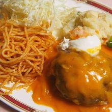 皿には、カツレータの他、パスタ、サラダ(千切りキャベツ、シャキシャキのリンゴ入りのポテトサラダ、そして温野菜)が盛られている。パッと見、お子様ランチの様。ライスは提供されないので、日本ではおかずに当たる料理をひたすら食べる事になる。