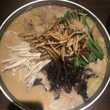 今回はごま味噌にしました。鍋の具に揚げたごぼうや生のキクラゲが入ってます。濃い割にはあまりはっきりしない味で、ニンニクや唐辛子を足しました。締めのちゃんぽんの時におたま三杯の大量のすりごまを投入され、どろどろザラザラして気持ち悪かった。