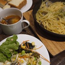 ランチだったので、サラダバー、ブレッドバー、ドリンクバー、そしてスープが付いていた。