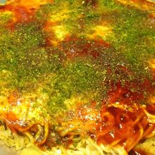 お好み焼は、店によって色々な焼き方があるが、当店のは全体的にしっとりとした仕上がりになっている。