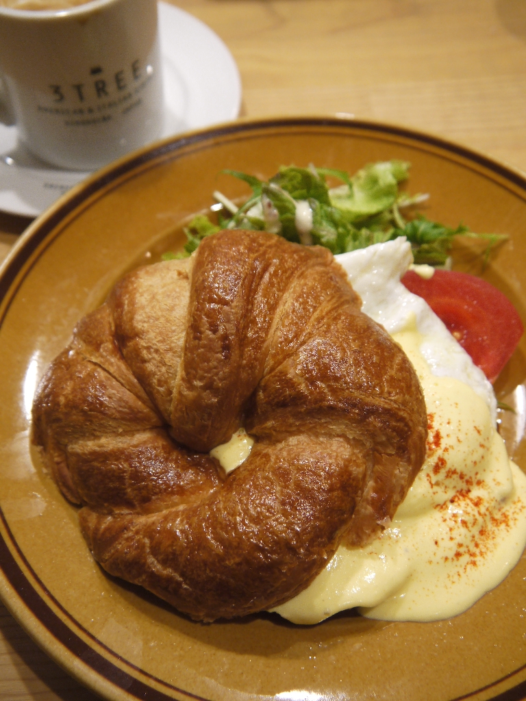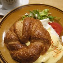 クロワッサンエッグベネディクト(アボカド+ホウレン草)は、当店が提供するモーニングメニューの1種。