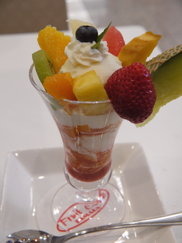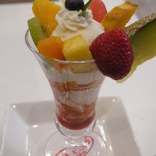 ギフト用フルーツの販売がメインだが、イートインスペースも一応あり(席数は少ない)、パフェ、パンケーキ等のデザートを提供。
