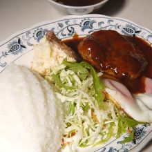 ハンバーグは、デミグラスソースがたっぷり掛かっていた。