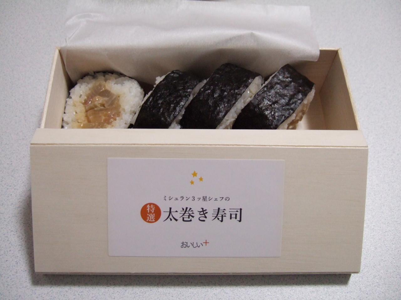 食べてみても全く違和感はなく、とても美味しく仕上がっており、特に鯛の太巻きは胡麻と茗荷が効いて、日本酒にも良く合いました。