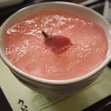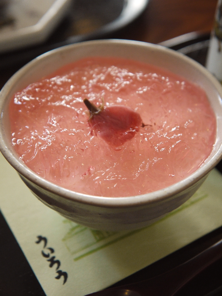 ミルク風味のムースに、桜風味のジュレを重ねている。