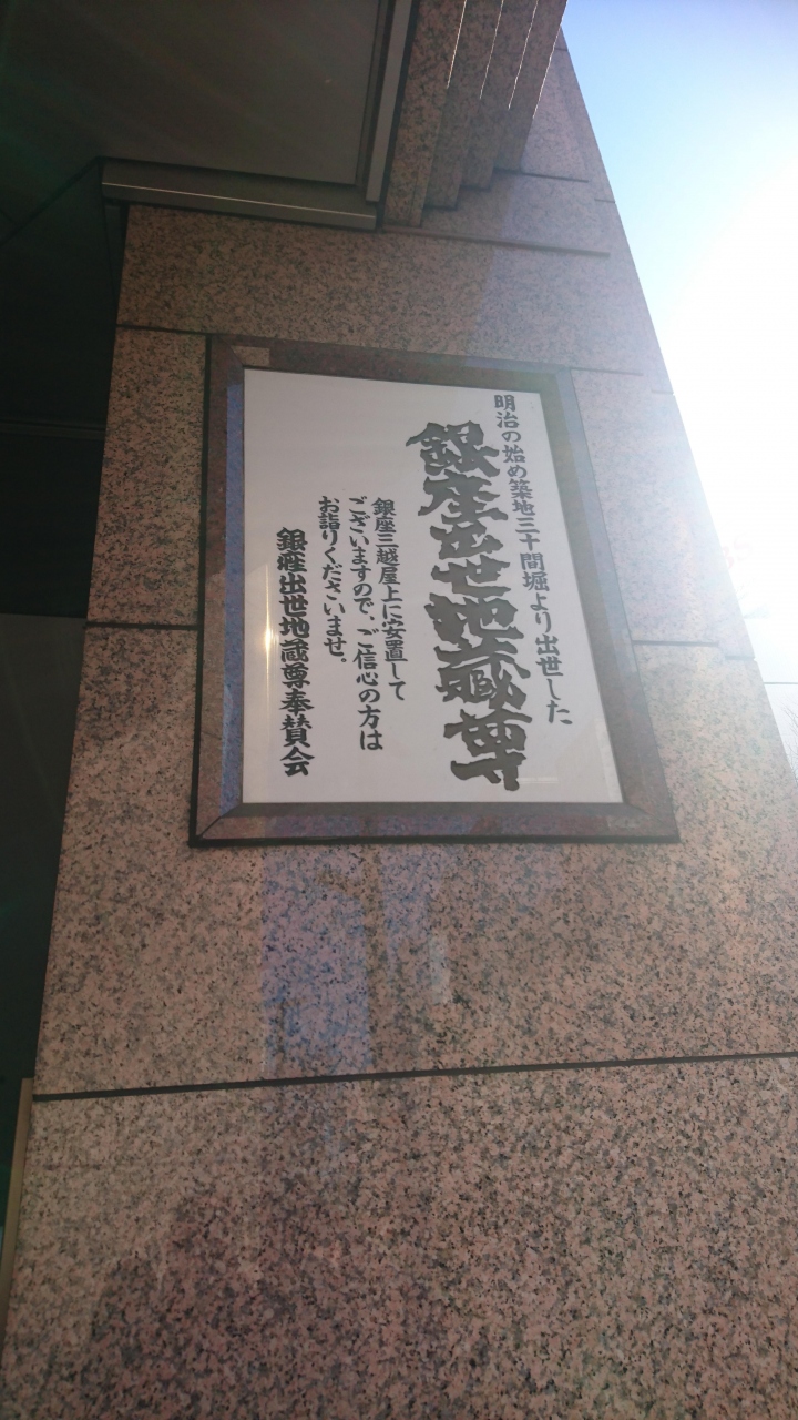 三越銀座店の屋上庭園にある出世地蔵尊にお参りしました。三十間堀の護岸工事中にお地蔵様が見つかり、当初は路上に祀られていたのが、1968年の三越改装の際に屋上に移転したとか。路上から屋上まで上ったサクセストーリーとして、出世祈願にお参りする人が増えたそうです。本尊を拝めなかったのが残念でした。