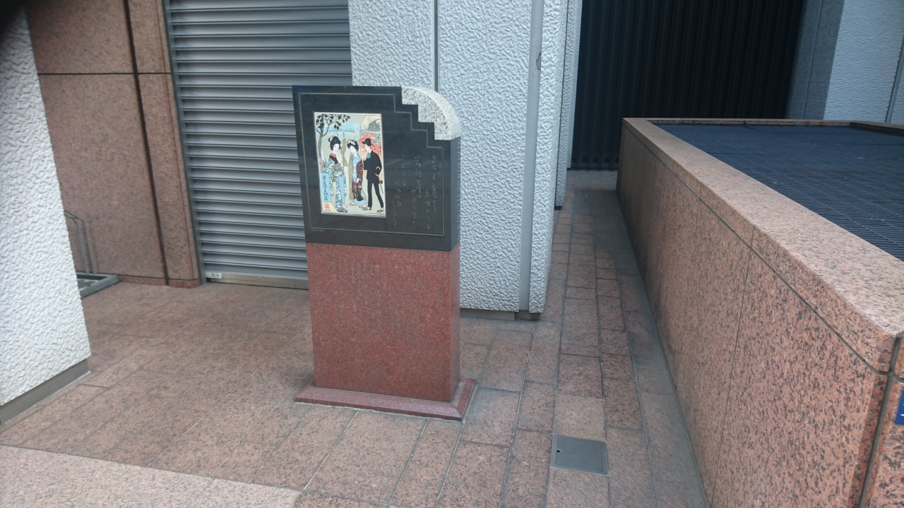 日本橋にほど近い場所にあるみずほ信託銀行の入口付近に竹久夢二に関連する石碑がありました。カラフルな絵の入った石碑で彼が大正2年にこの地に開いた港屋を記念して建てられたものです。竹久夢二は港屋で自身の作品を商品化して版画や封筒などを販売したそうです。竹久夢二の業績の一端を知ることができました。