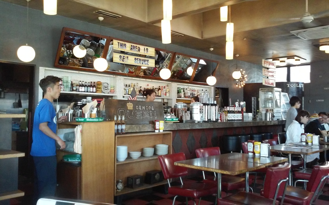 国道からも入れますが、(チョッと分かりずらいけど)住宅街側からが入りやすいです。メインはハンバーガーですが、量が多いので気をつけて注文した方がいいと思います。私はパンケーキとコーヒーを注文しましたが全部は食べられませんでした。