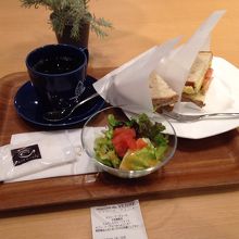 ランチセットのサンドイッチのサラダ付きにしましたが注文してから作ってるっぽいのでサンドイッチは温かいかと思いきや冷たかったです。