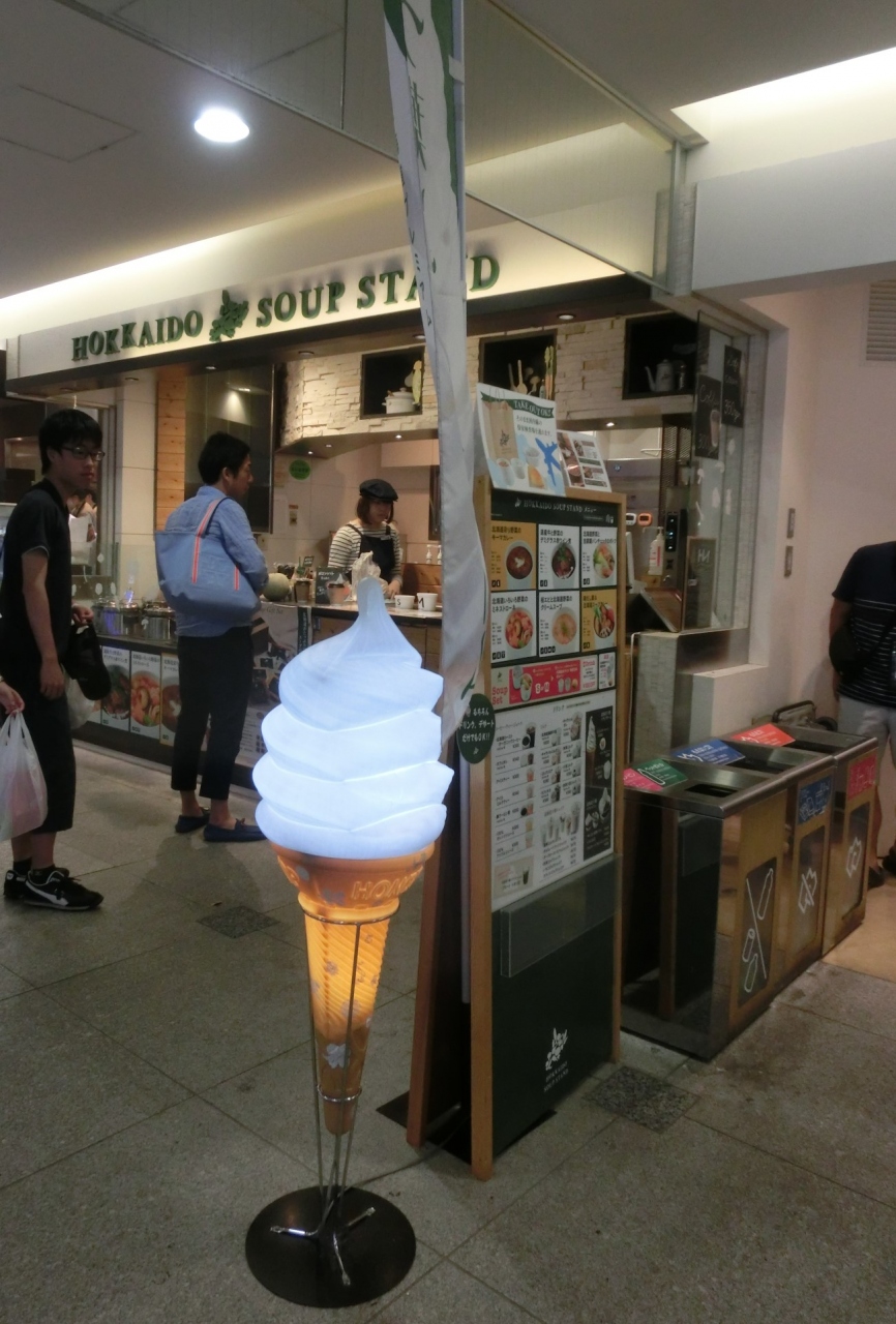 新千歳空港から帰る前に最後のソフトクリームをいただきました。スープ屋さんですが、ソフトクリームはミルク感たっぷりでとても美味しかったです。中央当たりのテーブルが並んでる場所に近かったので、座って食べることが出来て良かったです。