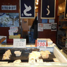 錦市場の中にあるお豆腐&豆腐スイーツなどのお店です。豆乳ドーナツが特に有名だと思います。小さめの揚げたてドーナツが袋入りで売られています。おいしいです。揚げているところも見れます。あと豆乳ソフトクリームなど。すぐに食べれるものが売られています。イートイン席はありません、ふつうの豆腐、お揚げ類も揃っています。