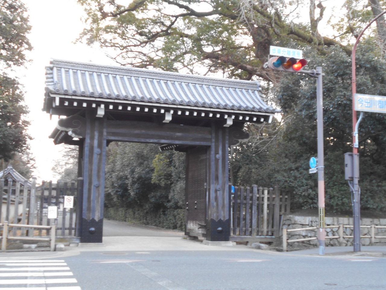 京都御苑の北側、名前の通り、今出川通に面したところにある大きな門です。京都御苑の北の出入り口です。門は開いていて自由に入れます。門はかっちりとした印象です。