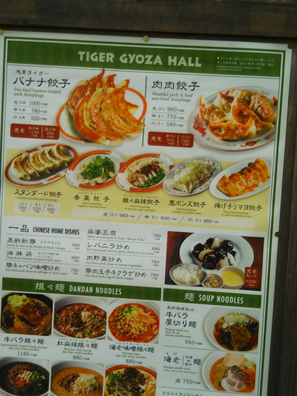 東京の人気観光スポット、浅草にあるレストランです。浅草の商業施設、ロックス3Gの向かいにありました。餃子をメインとした中華料理の専門店です。肉餃子のほか、変り種はパクチーや担々マーラーなどがメニューとしてありました。バナナ餃子は大ぶりで具材がたくさんつまっていて、ジューシーでおいしかったです。