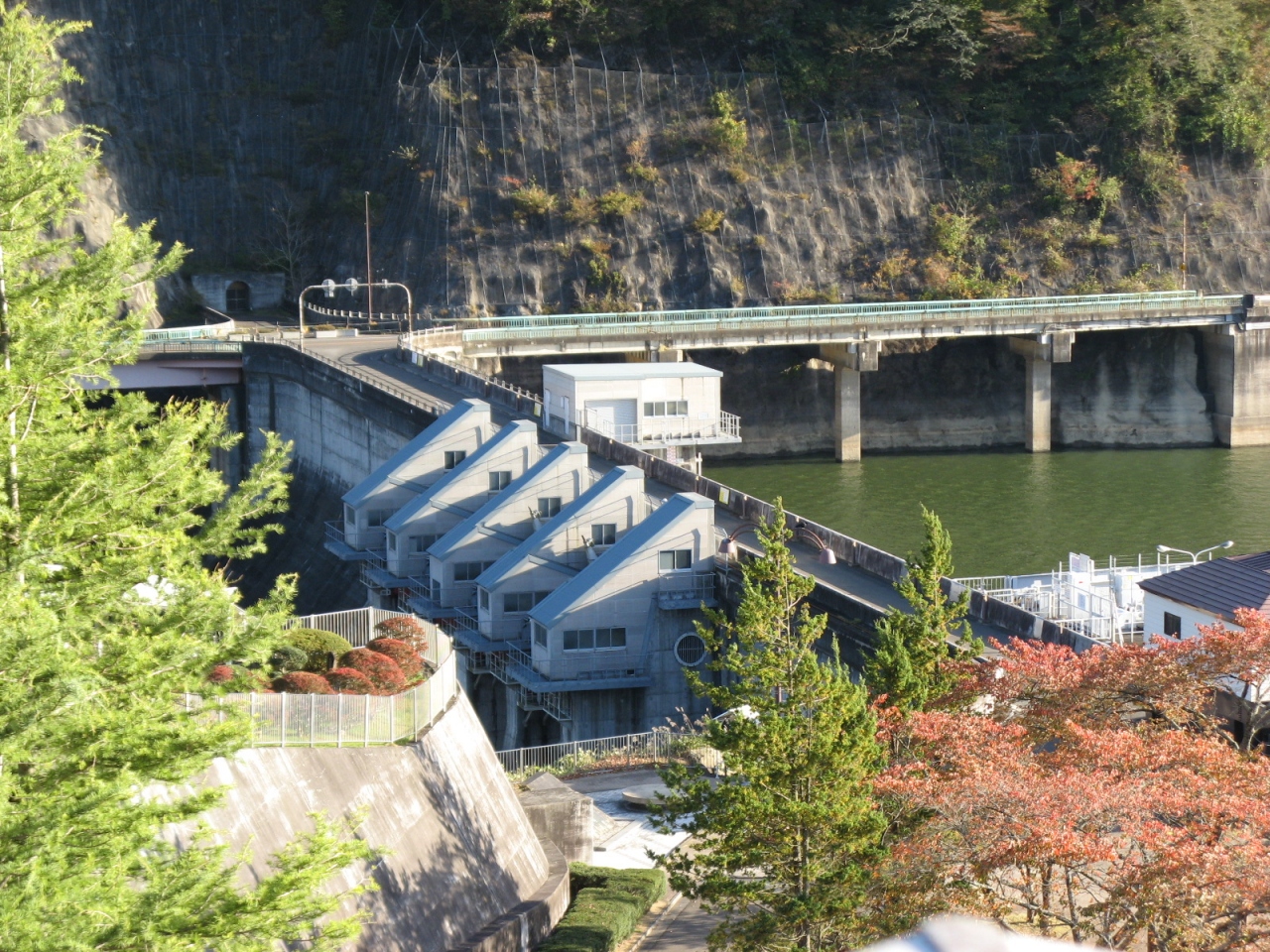 竣工が1970年と比較的古く、主に非常用洪水吐として洪水調節用に用いられるクレストゲート4門、常用の放水に利用される事が多いコンジットゲート3門を装備していて、ダムらしい外観がなかなか面白い。