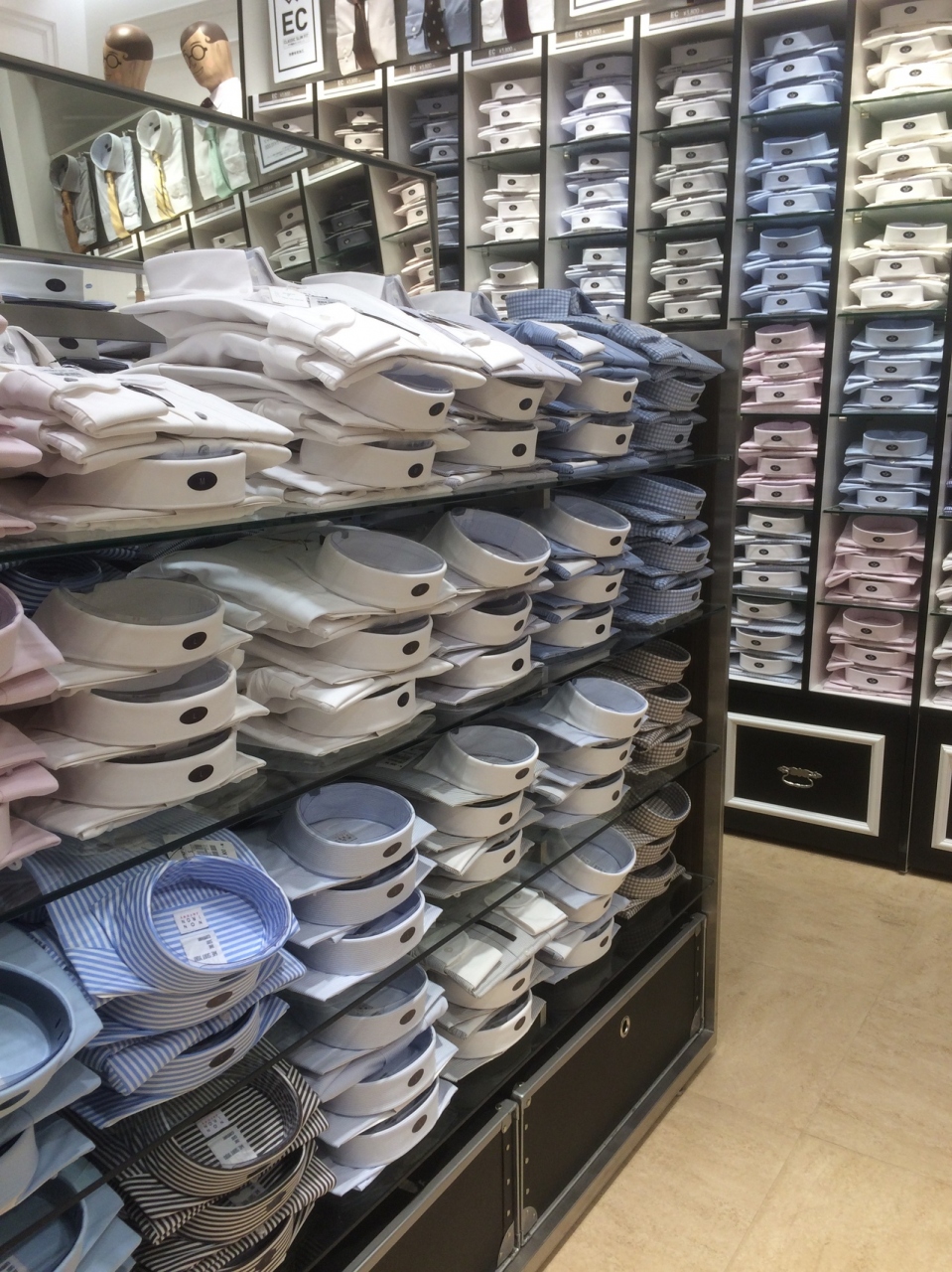 広い店内で奥までありました。出入口付近にはたくさんのワイシャツが置いてあり、ワイシャツ屋かと見間違えるほどでした。カラフルな色のものが多く値段も手頃でした。横には夫人用のカバンがいくつか置いてあり、ゆったりとした店内で見やすい配置でした。