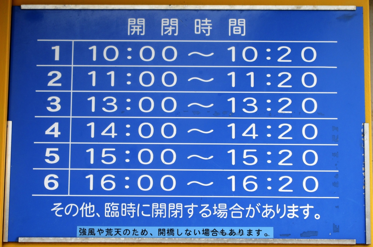 1日6回橋が音楽にあわせて跳ね上がります。(臨時で開閉することもあります)