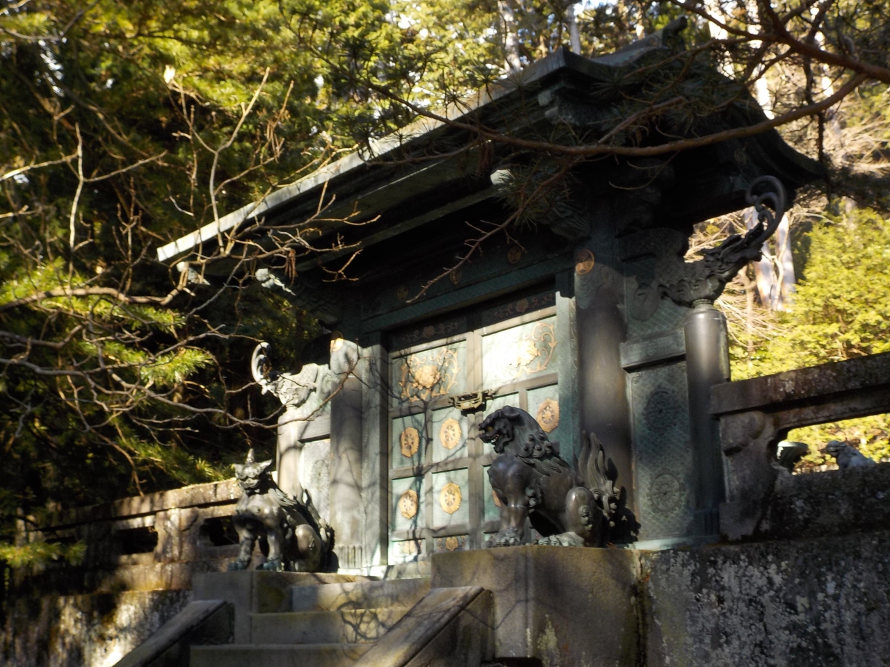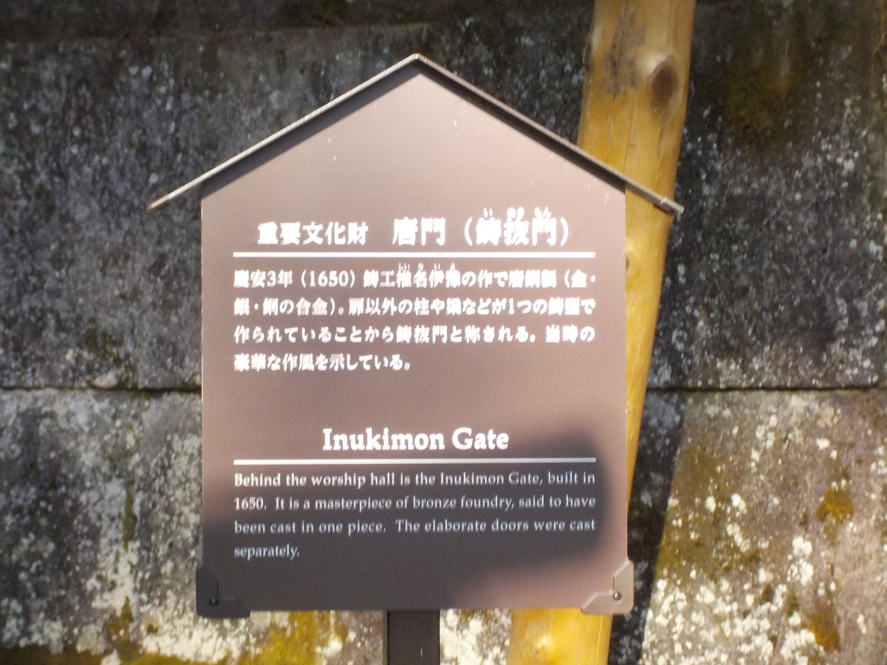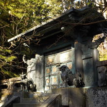 門だけでなく、前に鎮座する狛犬も唐銅(金・銀・銅を溶かして造られた合金)製です。