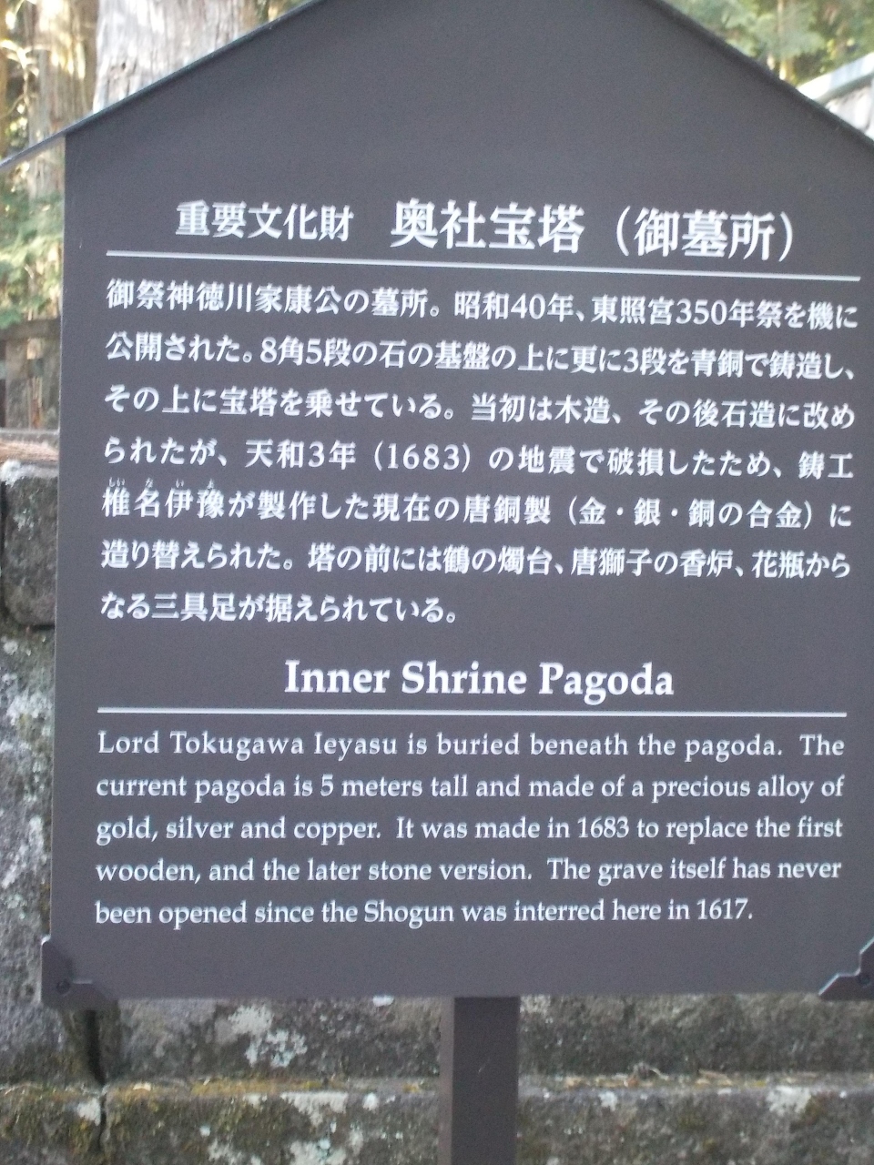 この宝塔の下には、家康公の遺骨があります。
