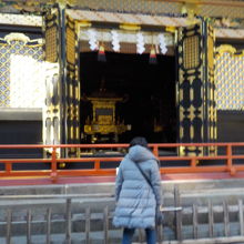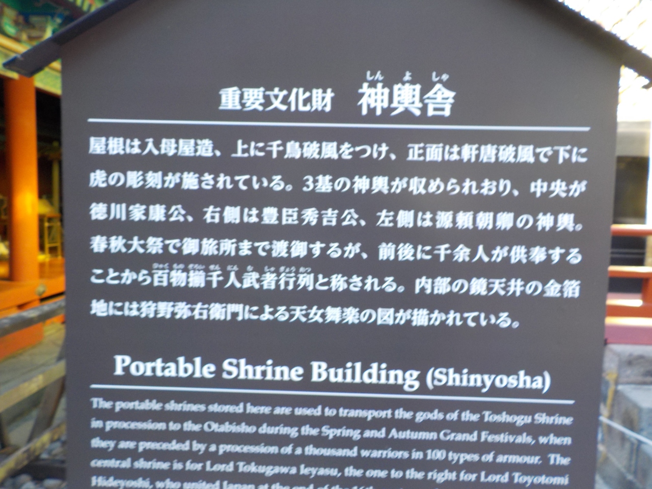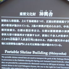 東照宮の大祭における、百者揃千人武者行列で担がれる神輿が3基、保管されています。