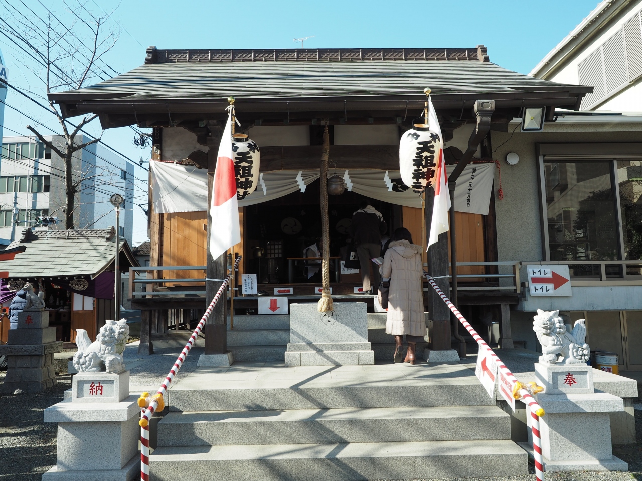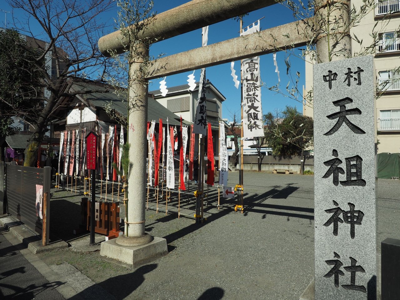 羽田七福いなりめぐりで伺いました。この天祖神社は太陽を信仰し発展した神霊であるといわれる天照皇大神と商業、工業で霊威を発揮するといわれ信仰されている豊受姫大神が祀られています。小さな神社の割に鳥居や神社名石碑は立派です。ただ境内はだだっ広く高山稲荷神社が境内社として鎮座しています。いなりめぐりの御集印はこちらの拝殿で頂けました。