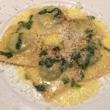 新宿御苑前駅すぐで大通りから1本入った所にある一軒家イタリアン。打ちっ放しのコンクリートでお洒落な外観。店内はカウンター席のみです。トスカーナ料理店でほうれん草とリコッタチーズを詰めたトルテッリ(ラビオラ)1800円を食べました。美味しかったです。