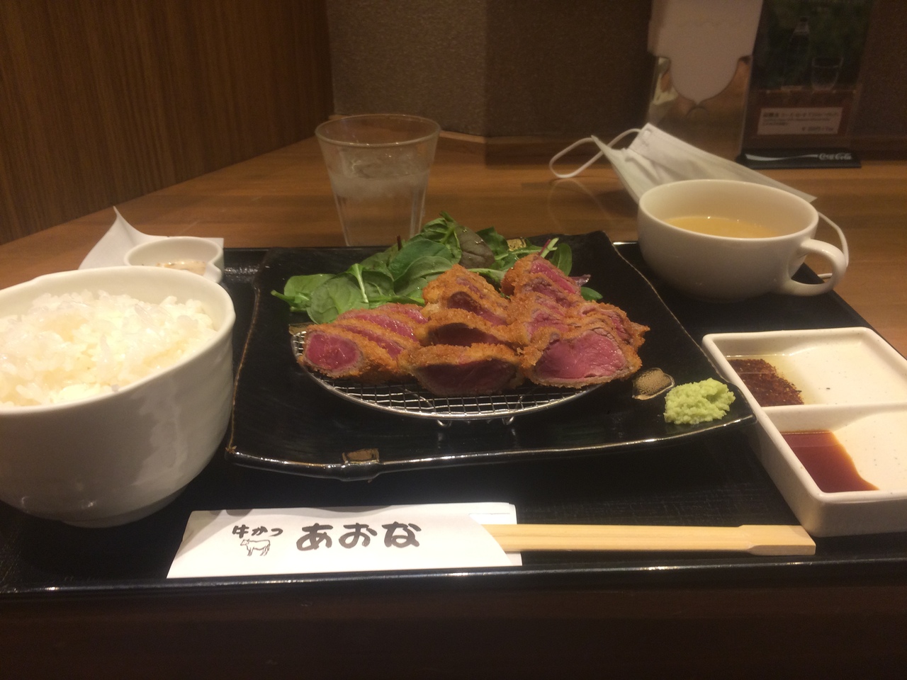 夕食で牛かつ定食が920円ととってもリーズナブルだと思ったので入店。