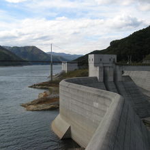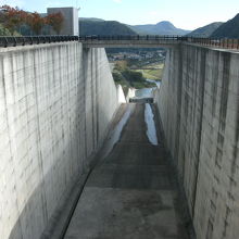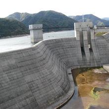 非常用洪水吐は平面湾曲型側水路形式と呼ばれる特徴のあるもので、訪れたときは残念ながら放流していなかったが長く湾曲した自由越流頂は見ごたえがありました。