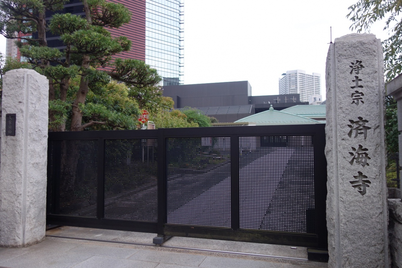 三田エリアを散策中こちらのお寺へ立ち寄りました。聖坂沿いの亀塚公園隣に有る大きく立派な現代的な建築の寺院でした。山門を入ったすぐ左側には幕末にフランス公使館がここへ置かれていたと解説された看板などがありました。