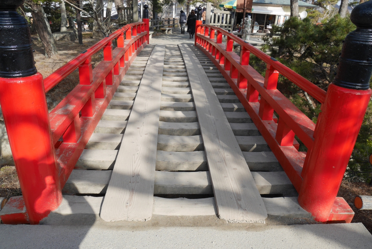 東松島駅から国道沿いに歩いていくと、海の中にお堂が見えます。五大堂に行くには赤い欄干のすかし橋を二つ渡ります。すかし橋の下は海なので、スマホで写真を撮る際には注意したほうがいいです。重要文化財の五大堂はそれほど大きくありませんが、立派な建物です。お堂の上には干支の彫刻が施されています。また、この島から見る松島の眺めはとても素晴らしいです。