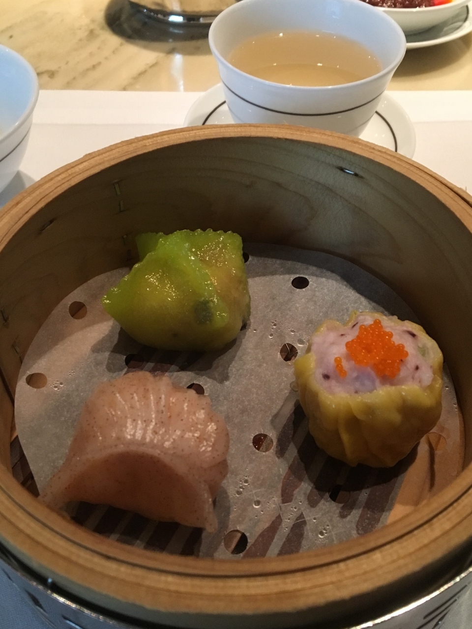 前菜、蒸し器に入った点心、揚げ物、麺、デザート、と一品一品サーブされ、どれも見た目も良くて、ちょっとした会食にも良いと思います。